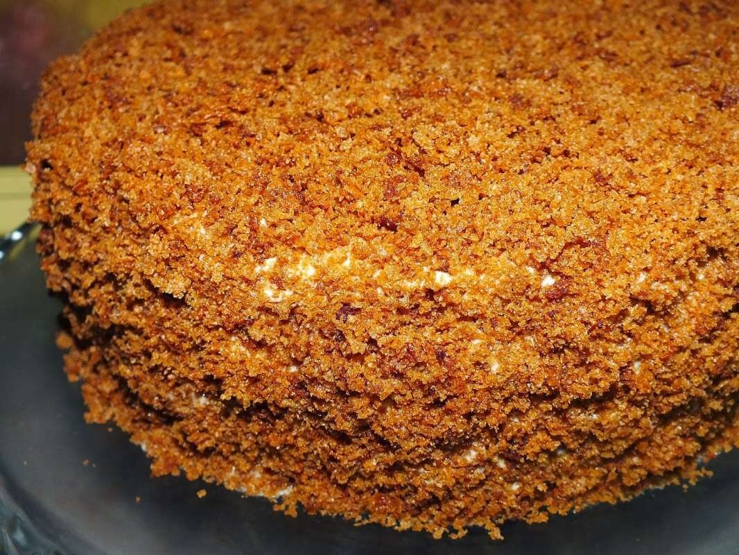 Хочу поделится свое рецептурой медовика. Обязательно беру мед гречишный он больше запаха дает тортику. Люблю чтоб тортик был сладким. Для теста мука 300-500 г сахар 200 г сливочное масло 200 г Мед гречишный 4ст.л. Яйца 6 яиц сода 2 ч.л. (без горки) крема на коржи я чередую Для крема. 1. Сметана 0,5 литр Сахар 0,200 гр. 2. Молоко500 мл яйца2 шт Мука3 ст.л. Сахар150-200 г масло сливочное100 г И так готовим с начало тесто В огнеупорную миску положить сливочное масло, сахар и мед. Миску поставить на водяную баню и нагревать, помешивая, около 4-5 минут, пока смесь не станет однородной, а сахар частично растворится. Добавить соду, хорошо перемешать и нагревать, помешивая, 1 минуту. Когда мы добавили соду то наша смесь побелеет. Снять миску с водяной бани, добавить яйца и быстро перемешать венчиком до однородности. Всыпать муку (300 г) и перемешать. Тесто должно получиться как густая сметана. Я коржами не люблю,мне