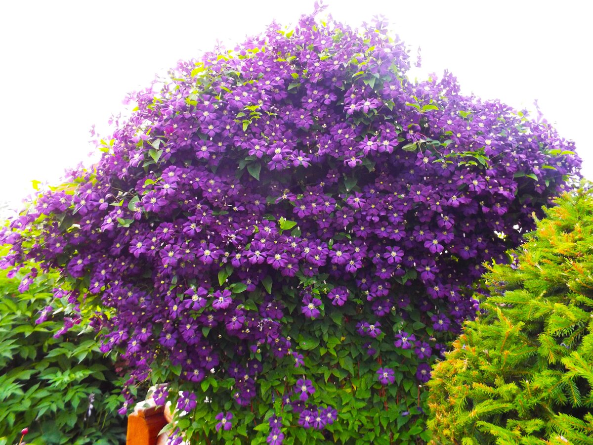 ЗИМОВКА КЛЕМАТИСОВ.❄️❄️❄️ Сегодня я отвечу на вопросы, касающиеся зимовки клематисов. Бытует мнение, что растения эти теплолюбивые нежинки и готовить их к зиме надо особенно тщательно. ❄️Пежде всего напомню, что они принадлежит семейству лютиковых - наиболее холодосткойкому и устойчивому. Клематисы трогаются в рост сразу после таянья снега. ❄️Нежные развернувшиеся листья без вреда способны выдержать весенние заморозки до -8 градусов. ❄️Вот только весной длительный застой талой воды у основания куста может быть опасен для растения. Чтобы избежать неприятностей, осенью, можно подсыпать под каждое растение холмиком конский навоз, перегной или торф. Весной потребуется отгрести лишнюю почву и освободить куст. ❄️Первые 2-3 года, я прикрываю молодые кустики лапником, или укрывным материалом. А когда клематисы начинают наращивать много побегов, я их срезаю, оставляя 20-30 см, снимаю с опоры и бросаю сверху на куст для снегозадержания. ❄️Выполняя все эти манипуляции, клематисы хорошо перен