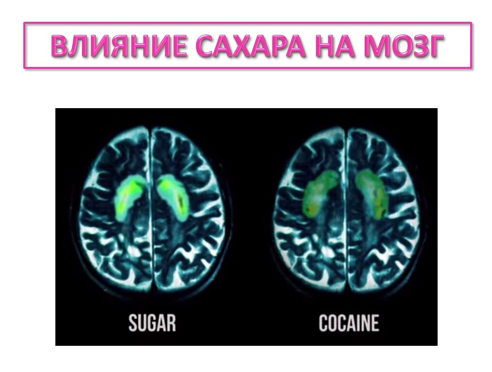 Как многие считают скушав сладкого мозг начинает работать лучше, но это не совсем так. Да мозг потребляет огромное количество глюкозы из кровотока, куда она попадает в процессе пищеварения продуктов, но почему тогда сахар вреден для человека. Глюкозу человеческий организм способен получить из всех потребляемых углеводов с пищей, но вот сам белый сахар- это быстрый углевод. Он моментально попадает в кровоток и вызывает инсулиновый скачек. Получив сахар в мозге формируется зависимость за которую отвечает отдел удовольствия. Тем самым мозг начинает приказывать нам есть больше и больше сахара с каждым разом поддерживая нас выбросом эндорфинов в кровь, так и формируется сахарная зависимость, которую последнее время сравнивают с наркоманией. Есть или не есть сахар выбирает для себя каждый сам, но его сейчас добавляют во все продукты. Если посмотреть состав, то вы обнаружите его даже в соленых огурцах. Все должно быть в меру, любой продукт способен нанести вред, если его употреблять в избытке