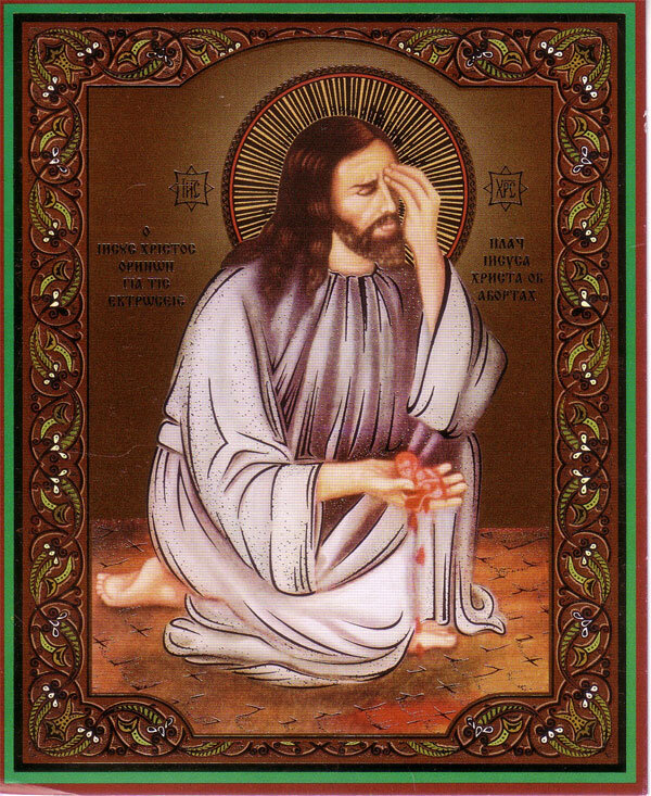 Икона Плач Иисуса Христа об абортахАборт — искусственное прерывание беременности хирургическим путем или медикаментозным вмешательством. Греческий митрополит Мелетий написал книгу, в которой он цитирует адвоката: «Верным доказательством абсолютного нравственного падения нации будет то, что аборт начнет быть делом обычным и абсолютно приемлемым».