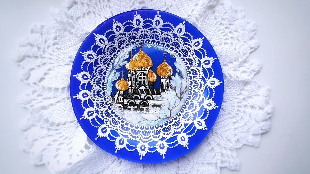 Тарелочка с заснеженным храмом и кружевной контурной росписью. Прекрасная идея подарка родным и близким! Для работы понадобится: • тарелка; • жидкость для обезжиривания; • контур по стеклу (черный, сусальное золото, коричневый, белый); https://clck.ru/EpoAx • глиттер (золотисто-черный); https://clck.ru/EpoCG • акриловая краска «Акрил-Хобби» (синий, фиолетовый, белый); https://clck.ru/EpoEs • круглая поролоновая кисть; https://clck.ru/Epo9Q • кисть синтетика; https://clck.ru/EpoHa • акриловый глянцевый лак; https://clck.ru/EpoFc • кристальная паста; https://clck.ru/EpoGW • декоративные блёстки. Подписывайтесь на канал! Оценивайте работу! Комментируйте! :)