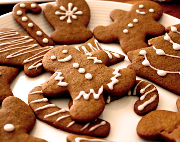 Имбирные прянички можно по праву назвать самым новогодним рецептом. Во многих европейских странах этими чудесными пряничными человечками на Рождество и Новый год украшают елку, и детишки снимают их с веток и едят! :) С некоторых пор мы завели дома такую же традицию. Смею вас уверить: имбирные человечки получаются такими вкусными, что не задерживаются даже на несколько дней - съедаются мгновенно! Рецепт не очень простой и на его приготовление вам придется потратить пару часов, но оно того стоит. Ингредиенты для выпечки: для глазури: Способ приготовления Смешиваем просеянную муку с разрыхлителем. Добавляем в муку молотые корицу, имбирь и гвоздику, а также какао. Перемешиваем. Немного размягчаем сливочное масло и добавляем в муку. Растираем все это до однородной массы. Наконец, добавляем яйцо и сахар, тщательно перемешиваем и замешиваем крутое тесто. Из этого теста мы делаем шар, накрываем его целлофановым пакетом и ставим в холодильник на полтора часа. Когда время придет, достаем тест