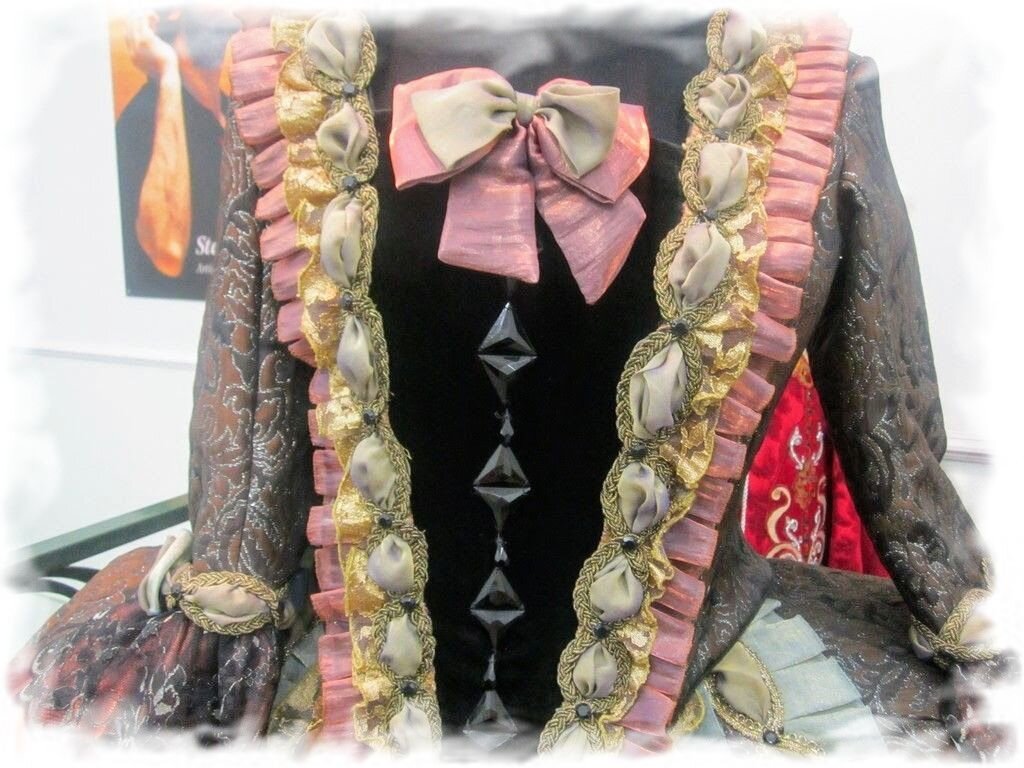 Мастера знают все тонкости швейного искусства, их работы яркие, оригинальные и красивые. Над каждым таким костюмом трудится многочисленный коллектив: модельеры, закройщики, швеи, вышивальщицы, кружевницы. Продумывают все цвета, детали, материал, оформление, а в результате получаются настоящие шедевры. Этот костюм дамы был сшит специальн