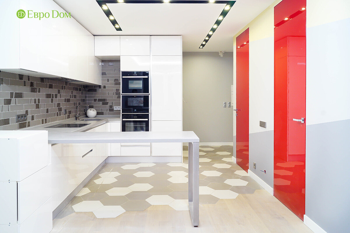 Во-первых, увеличилась кухня, которая теперь включает и зону отдыха, отделенную от кухонной зоны барной стойкой.