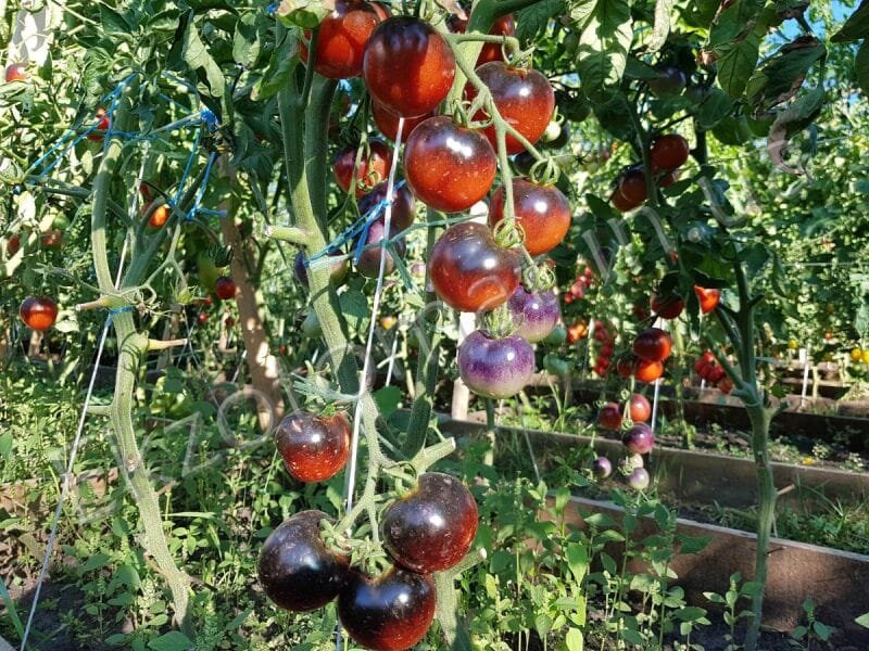Результат продолжения селекционной работы профессора кафедры садоводства Джима Маерса в университете Орегона, США по получению томатов с фиолетовой окраской плодов.