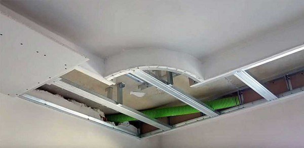 Теперь лишние куски гипрока можно убрать. Их срезают в уровень с нижним краем профиля, аккуратно надрезая бумагу и отламывая небольшие фрагменты.