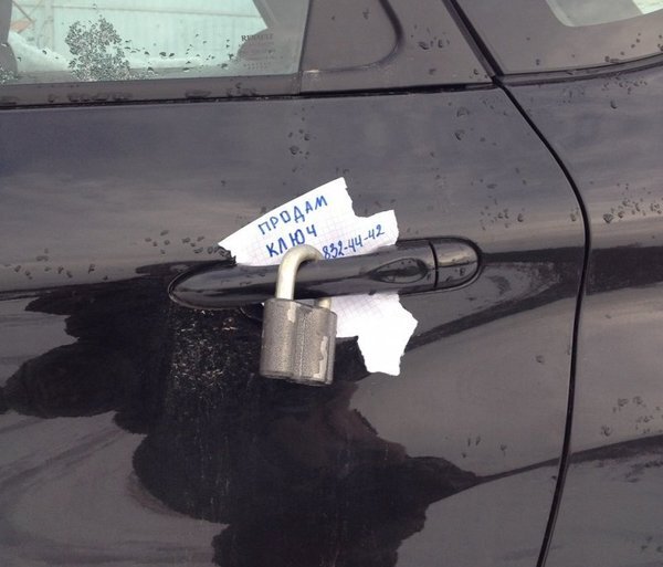 Желание легко получить деньги заставляет мошенников придумывать все новые и новые способы для развода. Одним из них является- повесить навесной замок на ручку автомобиля и приложить к нему бумажку с номером на который нужно позвонить.