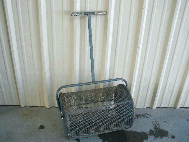 В распоряжении садовников и садоводов есть еще один малоизвестный в нашей стране инструмент - валик-укладчик торфа и компоста. Он похож на распространенный и у нас обычный садовый валик для выравнивания грунта,но сделан из сетки. Часть валика - съемная, в виде крышки. В валик закладывается торф, плодородный грунт или сухой компост, который может проваливаться сквозь ячейки сетки из которой сделан валик. При прокатывании такого укладчика по газону. его содержимое распределяется ровным слоем.