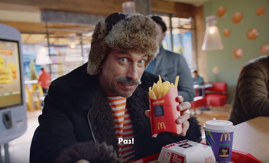 Компания «Макдоналдс» представила новую рекламу «МакКомбо», при покупке которого, вы не только экономите 30%, но и повышаете шансы выигрыша в Монополию. McDonald’s не перестает радовать своих клиентов, сделав настоящую комбинацию, состоящую из акции «МакКомбо», где вы делаете заказ из трёх позиций в меню при этом сохраняя до 30%. К этому всему добавляется недавно запущенная акция «Монополия». Тут же нужно срывать стикеры с продукции и получать за это призы. Компания «Макдоналдс» не запрещает сочетать две эти акции, позволяя при помощи «МакКомбо», срывать больше стикеров. Для оглашения столь выгодного предложения всем желающим был снят промо-ролик, в конце которого был представлен фильм «Ёлки Последние». А главную роль, в данной рекламе исполнил актер и ведущий - Дмитрий Нагиев. Герой явился в «Макдональдс»в образе персонажа дяди Юры из очередной части «Ёлок». По всей видимости, прямо со съемочной площадки. Вот такуюя гремучую смесь из акций, в купе с рекламным роликом фильма продемонст