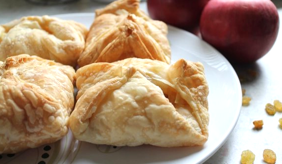 Вечный вопрос: что дать ребенку в школу?, чтоб и полезно, и питательно, и вкусно, и так, чтоб все съелось до крошки. Меня просто спасает это рецепт. Ребенок в восторге от вкуса, мама от быстроты приготовления))) Ингредиенты: Яблоки - 4- 5 шт (зависит от размера) Слоеное тесто - 1 упаковка Сахар - 50 г Корица - 1 пачка Изюм, орехи и т.д. - по желанию для насыщения вкуса Желток - 2 шт Способ приготовления Шаг 1. Подготовим яблочки: очистим и порежем ломтиками небольшого размера (тонкими тоже не должны быть, могут “увять” в духовке). Шаг 2. Тесто покупаю, так как очень долго возится с его приготовлением, и никаких вредностей в нем нет (мука да вода:) ), режим его квадратом, чтоб потом загнуть края к центру. Шаг 3. Собираем наш конверт: в центр кладём немного яблок присыпанных сахаром и корицей, если есть желание добавляем немного рубленых орехов, и изюма и т.д., защипываем края теста в центре. Шаг 4. Отделяем желтки от желтков. (из белков я параллельно делаю безе, чтоб не оставались:) )