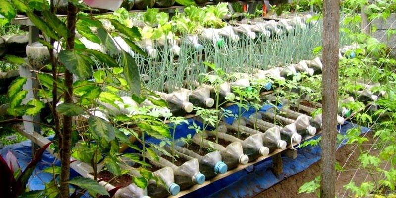 О том, что пустым пластиковым бутылкам находится множество применений, известно практически всем. Чаще всего эту тару используют на садово-огородных участках. Из этой посуды можно изготовить множество полезных в хозяйстве приспособлений и создать декор для украшения приусадебного участка. Варианты использования бутылок Пластиковая тара имеет множество достоинств: Полив огорода Чаще всего пластиковые бутылки используются для полива садового участка. Можно наливать воду в тару для отстаивания, а потом поливать растения, а можно использовать различные варианты орошения почвы. Обычное прикорневое орошение. Для такого способа потребуются двухлитровые пластиковые бутылки (одна емкость на одно растение) и поролон. Бутылку заполняют водой на 4/5, закрывают горлышко куском поролона и кладут под растение так, чтобы горлышко располагалось рядом с корнями. При этом вода потихоньку просачивается в грунт. Капельный полив. У бутылки обрезают донышко, а в пробке проделывают несколько отверстий при пом