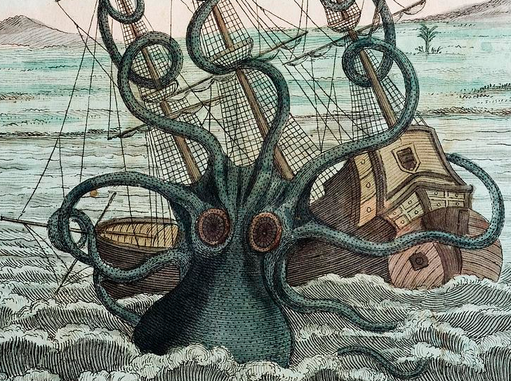 У берегов Норвегии, на дне океана, дремлет гигантский Кракен. Когда он просыпается, то направляется к поверхности океана, производя при этом мощную рябь на поверхности. Любой корабль, заметивший эту рябь, должен немедленно уплывать или погибнуть. Самые ранние описания Кракена не дают много информации. Они останавливаются на размере существа, утверждая, что он самый огромный монстр во всем море. Он настолько велик, что может глотать корабли и китов. Настолько большой, что его тело можно принять за землю, рот за грот, а зубы за валуны. Настолько велик, что его движения могут создавать водовороты. Несмотря на отсутствие деталей о его внешности, размеров Кракена было достаточно, чтобы обеспечить ему место в скандинавской легенде. Со временем его внешность была конкретизирована, давая людям полное представление об этом чудовищном существе. У него плоское тело, которое имеет особенность выходить из воды в виде горбов, как небольшие острова, и десятки длинных гибких рук (иногда называемых рог