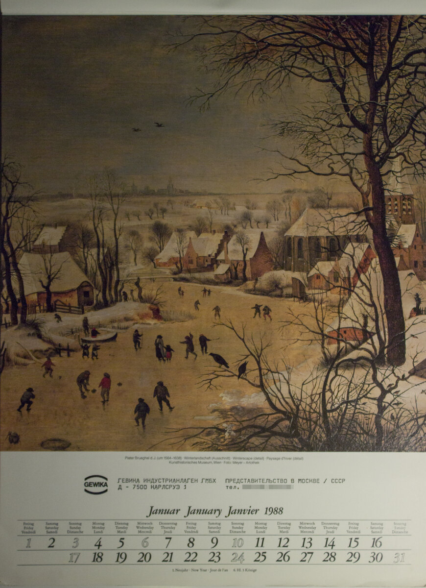На днях нашел на антресолях большой пакет со старыми календарями. Давайте с вами вспомним то время. Красочные настенные календари с качественной полиграфией ценились всегда. Они являлись украшением интерьера, их не зазорно было вручить в подарок. Особо ценные экземпляры хранили, а если совпадали дни недели, то использовали повторно. Отечественная полиграфия в те годы не могла по качеству соперничать с западной, особенно на больших форматах. Часто краски не совпадали, картинка получалась блеклой и смазанной. Поэтому зарубежные издания ценились особенно. В календарях очень часто использовались репродукции картин знаменитых мастеров. Такую страничку можно было даже вырезать и вставить в рамку. Две картины голландского живописца 16 века Питера Брейгеля. Клод Жозеф Верне, "Водопад в Тиволи", 18 век Еще одной распространенной темой была природа. Перед вами лист из календаря в стиле "ботаническая иллюстрация". А вот редкий экземпляр - картинка напечатана на прозрачной пленке. Такая отлично