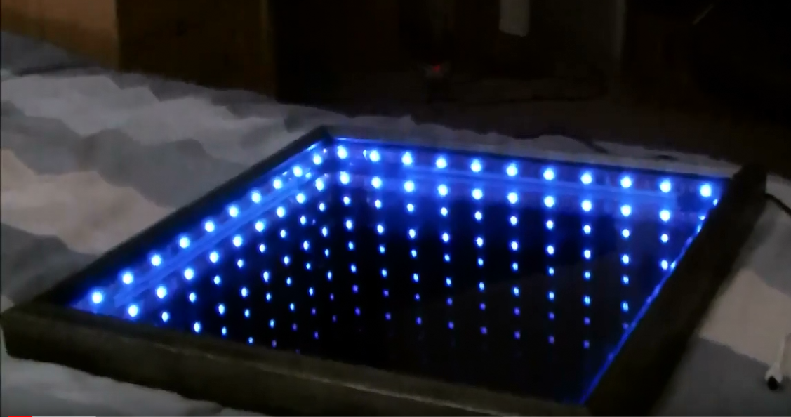 Добрый день строителям и дизайнерам! Сегодня мы займемся изготовлением светильника с эффектом бесконечности. В конце данной статьи Вас будет ждать приятный совет его применения) Итак приступим, и по традиции сначала посмотрим на готовый вариант, для вдохновения. Для данного чуда нам понадобится рамка (подойдет любая рамка для фотографий или картин, но обязательно но стеклом!) и зеркало, разумеется по размеру нашей рамки. Надеюсь среди Вас есть автолюбители, ведь нам потребуется тонировка, а если точнее, нам необходимо затонировать наше стекло от рамки. Стараемся не оставлять пузырей на стекле и разглаживаем на совесть! Можно использовать скребок как это сделал я Сделали? Отлично! Теперь укладываем наше затонированное стекло в рамку и переходим к следующему шагу Берем диодную ленту, кстати можно брать не конкретного цвета как это сделал я, а взять на пульте, с изменением подсветки, это будет круто! Приклеивает ленту на внутреннею сторону нашей рамки Выводим аккуратно выход от нашей л