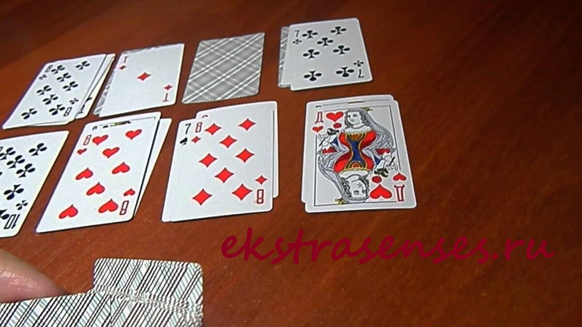 В предыдущей статье мы гадали онлайн на любовь совершенно бесплатно. Если вы не гадали, то можете перейти на гадание на любовь первый способ. Здесь же мы рассмотрим гадание на игральных картах на любовь. Перемешиваем карты так, как описывалось здесь. Из колоды игральных карт достаем валеты. Их как мы знаем четыре штуки: черви, трефы, бубны, пики. Каждому из валетов закрепляете мужчин, на которых гадаете на любовь. Загадали. Перетасовали между собой этих валетов и разложили лицом вниз. Оставшиеся карты раскладываете под каждым валетом. Получилось четыре стопки классических карт.Теперь каждую стопку переворачиваем лицом вверх и смотрим каких мастей преобладает больше. Если это черви значит этот мужчина любит вас всем сердцем и относится очень серьезно к вашим отношениям. Больше карт пики – этот валет хочет от вас детей. Бубны говорят, что этот человек использует вас как с финансовой стороны, так и с энергетической. Про таких людей еще говорят, что они энергетические вампиры. Если же