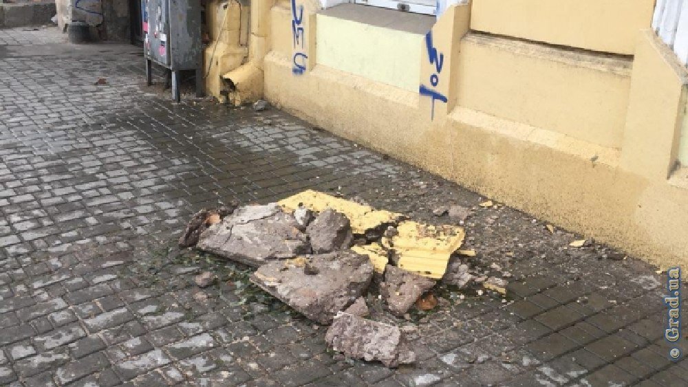 Инцидент произошел сегодня. Всего неделю назад коммунальщики снимали аварийную лепнину с соседнего дома - № 4 в переулке Некрасова, а совсем рядом падающие фрагменты снять не потрудились, пишет одессит.