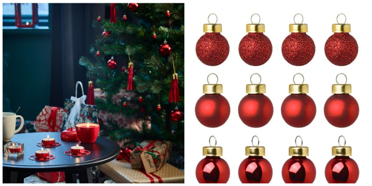 - Кто самый главный в новогодние праздники? Конечно же красавица ель, сосенка, именно она олицетворяет грядущее событие, именно под ней мы привыкли находить подарки, и под нее прятать для любимых и близких. Что бы королева праздника была по истине самой красивой, ее нужно нарядить. Для этого в ИКЕА зимней коллекции есть целые наборы елочных украшений. Это и красные шишки, словно настоящие кедровые свисают с веток, и стеклянные грибочки, спрятались внутри мохнатой красавицы и радуют гостей своей привлекательностью.