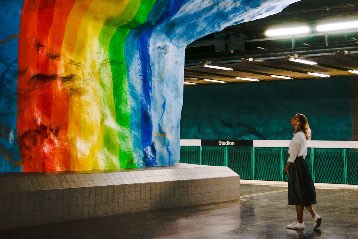 Стокгольмское метро - это must see в каждом путеводителе по городу. Вам, скорее всего, попадались фотографии на просторах интернета. Красочные станции, с огромными скальными сводами, возвышающимися над людьми.