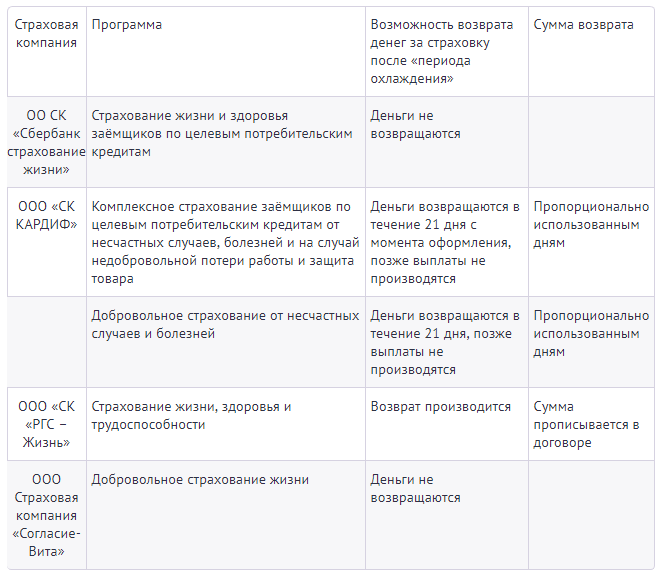 Вернуть страховку после окончания «периода охлаждения» получится только застрахованным в «РГС-Жизнь» и «СК Кардиф». У остальных страховых компаний прописано, что выплаты при расторжении договора страхования не производятся, если иное не предусмотрено договором страхования, поэтому прежде, чем писать заявление в страховую компанию, необходимо прочитать условия договора.