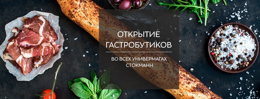 Как известно, новогодняя пора - это время чудес и удивительных подарков. Волшебство проникло и в СТОКМАНН, принеся с собой новость, которую наши покупатели ждали очень давно… Уже сегодня, придя в СТОКМАНН, Вы сможете не только насладиться комфортом европейского шоппинга, выбрать подарки и новогодние украшения, но и купить необычные и невероятно вкусные угощения к праздничному столу! Только лучшие европейские марки, только эксклюзивные товары! Любимые вина, вкуснейшие десерты, ароматные закуски и другие продукты питания европейского качества ждут Вас во всех Универмагах СТОКМАНН! Что же будет представлено в наших Гастробутиках? И это только часть ассортимента, который несомненно удивит качеством и порадует разнообразием. Делайте свой вкусный выбор в Гастробутике и цените вкус жизни! Ждем Вас во всех Универмагах СТОКМАНН!