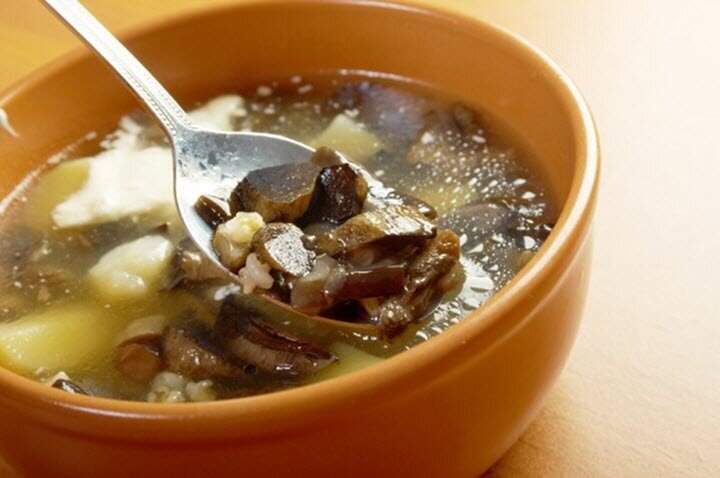 Грибной суп с перловкой. Рецепт из сушёных лесных грибов.