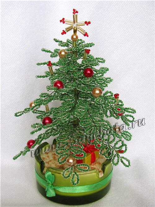 Сейчас я расскажу, как не сложно сделать ёлочку из бисера своими руками: Как сделать: Для изготовления новогодней ёлочки вам понадобится: Высота ёлочки будет зависеть от количества уровней веточек. Нарядная новогодняя елка из бисера готова! Думаю, каждый будет счастлив получить в подарок такую ёлочку!