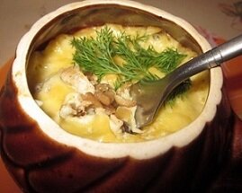 Жульен - очень популярное блюдо. Существует множество различных способов приготовления, но я остановился на этом именно из-за количества лука. В таком блюде лук играет очень важную роль, поэтому масса данного ингредиента в "Жульене" должна ровняться массе мяса. Общее приготовление блюда 1 час 30 минут. Количество указанных ингредиентов хватает на 4-6 порций( в зависимости от вместимости горшочков). Ингредиенты: Приготовление. Поставить варить окорочка, воду посолить, поперчить. После того, как снимите пенку, положите целую очищенную луковицу. Варить до готовности на слабом огне . По готовности достаем мясо, остужаем, отделяем от кости и режем мясо соломкой. Нарезать лук четвертькольцами. Шампиньоны режем небольшими кусочками. Нарезанный лук выкладываем на заранее разогретую сковороду с маслом. Жарим на сильном огне. Лук должен томиться в масле в течение 5-7 минут. После выкладываем в сковороду мясо. Жарим мясо с луком 3-5 минут. Выкладываем шампиньоны и кладем кусочек сливочного м