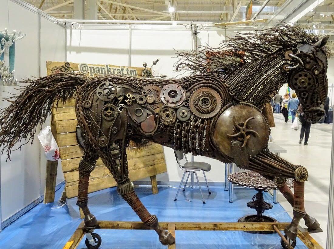 Стимпанк сегодня — это новое дизайнерское направление, которое приобретает всё большую популярность в России. Хотя современный стиль стимпанка и многие его черты, отслеживались ещё в искусстве прошлых веков, в наши дни этот стиль получает перевоплощение известных традиций и направлений. Это направление научной фантастики, включающее технологию и декоративно-прикладное искусство, вдохновлённое паровой энергией XIX века. Возникшее как литературное течение в противовес киберпанку, стимпанк вырос в стиль свободного искусства и особую субкультуру. Даже обычный конь в представлении творческих людей, работающих в этом стиле, выглядит крайне своеобразно. Смотрите сами :-) Представляете как эти мастера видят наш мир? Они воплощают свои мечты и замыслы в самые реальные предметы и вещи, сувениры и мебель. Основными деталями для творчества у этих мастеров являются разнообразные подшипники, всевозможные шестерёнки и другие замысловатые предметы… Кажется, они все пытаются изобрести некий вечный двиг