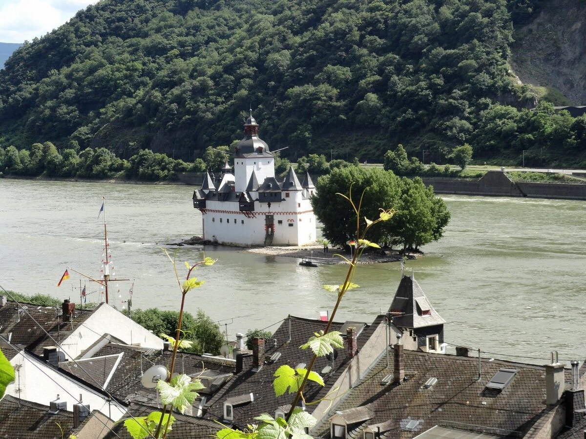 И сутки круглые аншлаг! Это я к чему? А к тому, что сегодняшний рассказ о замке, который несколько столетий был таможней. Но, как говорили латиняне, festina lente, что на великий и могучий можно перевести как «дело верши, да не спеши». Средь вод Рейна, на небольшом острове Фалькенау, что рядом с городком Кауб (Kaub) расположился один из самых необычных замков Европы - замок Пфальцграфенштайн (Burg Pfalzgrafenstein). Честно говоря, я не совсем понимаю как вообще замок может быть «обычным»... Великий француз Виктор Гюго называл его «каменным кораблём, навечно ставшим на якорь посреди реки». Именно так он и выглядит. О дате постройки замка достоверной информации нет, однако первое документальное свидетельство о нём датировано 1277 годом. Построен он был, да, в качестве таможни. В замке размещался небольшой гарнизон, 20-40 человек. Ну и несколько артиллерийских орудий. На случай возникновения разногласий, так сказать. Последним же аргументом для несогласных с таможенниками служила массивна