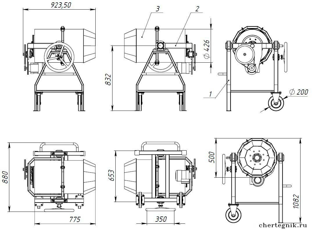 Такие бетономешалки отлично справятся с т.н. «тяжелыми» смесями и растворами, они легко и быстро разбираются и, как следствие, транспортируются тоже проще.