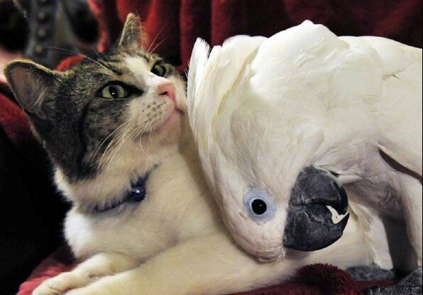 ПОПУГАЙ ГЛАДИТ КОШКУ, А ОНА В ОТВЕТ С НИМ ИГРАЕТ! НУ ЧТО МОЖЕТ БЫТЬ МИЛЕЕ?!