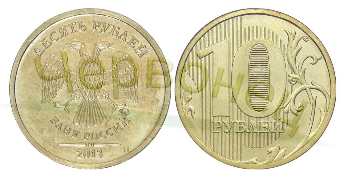 Ну а у ММД уже наоборот хвостик на конце буквы М огибает всю аббревиатуру. Ну вот искать нужно 10 рублей 2013г.