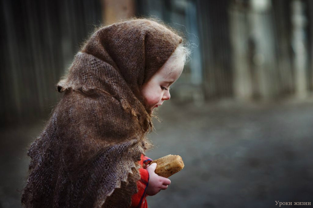 Саша возвращался зимним вечером из техникума. Спустился в подземный переход метро и остановился возле прилавка с овощами взять на последние студенческие хотя бы пару яблок – желудок с утра не дает покоя, все кушать просит. Стал в очередь из трех человек. Впереди него стояла женщина с ребенком. Но это мягко сказано, потому что женщина была просто бомж, и в таких же одеждах стояла рядом девочка лет пяти. «На дворе десятиградусный мороз, а они почти раздеты... Как они и где живут? Неужели нет выхода для этих бедных людей?» Пока женщина решала, что ей взять, девочка дергала ее за помятую штанину, жадно смотрела на бананы и жалобно пищала: - Ну, купи… купи мне банан… ну, купи… Но денег явно не хватало, и женщина зло шипела сквозь зубы: - Закрой рот, я тебе сказала… Вот отойдем, я тебе покажу банан… Картина затянулась – у женщины не хватило денег на то, что она взяла, и продавец начала все взвешивать заново, отбирая понемногу с каждого пакета. Саша смотрел на девчушку, и сердце защеми