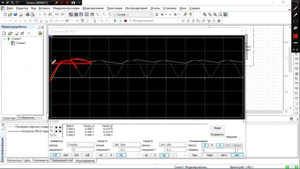 После включения схема заработала. В нагрузку автор повесил 2 лампочки накаливания на 100Вт включенных последовательно.