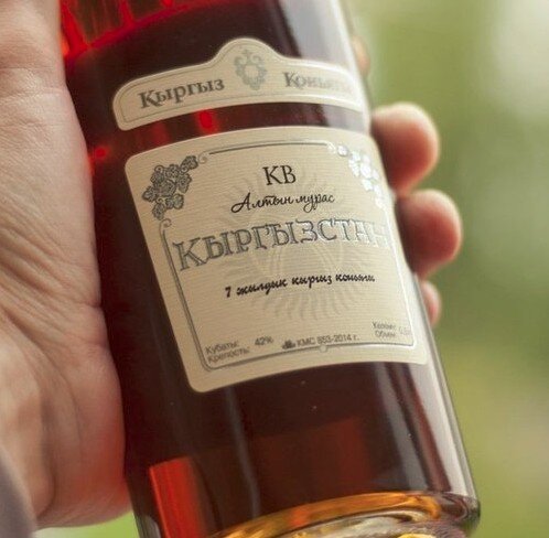 Климат Киргизии идеально подходит для выращивания винограда, а значит можно делать хороший коньяк. Дубы для дубовых бочек тоже имеются, однако в 2016 их поразила какая-то серая хворь (в Бишкеке), но так как у нас коньяку уже 7 лет, то нас это не касается. Давайте посмотрим на бутылку: