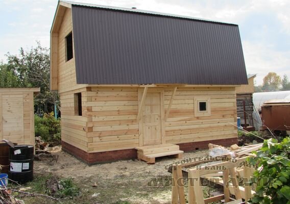 Строительство на дачном участке в Казани небольшого размера банного дома с мансардой можно считать рациональным подходом, позволяющим сэкономить свободные площади для зеленых насаждений. Мансардный этаж превращает баню в функциональное строение, удобное в пользовании и привлекательное для глаз.