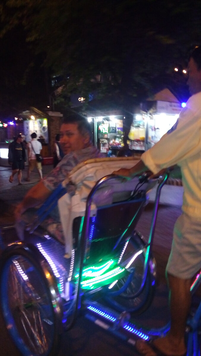 В азиатских странах до сих пор используется такой необычный вид передвижения, как рикша. Проще говоря садишься в коляску, управляемую сзади человеком. Ощущения ну ооочень необычные! И неловко как-то – везут тебя как инвалида, но вместе с тем и радость – как в детстве на санках… Так что рот прямо расплывается в улыбке… а рядом с тобой на дороге обычные автомобили! Стоит попробовать хотя бы разок. Мы «на рикшах» проехались во Вьетнаме в Ня-Чанге. Вышли из торгового центра «Нячанг» и поняли, что обратно до отеля с покупками пешим ходом целых полчаса как-то уж очень не хочется идти. Вот и решили прокатиться на рикшах по прямой хотя бы до Лотоса (это такой ня-чанговский ориентир).