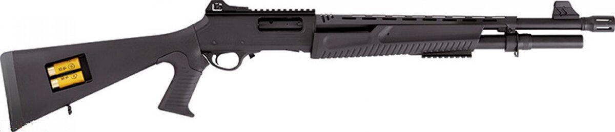 - Фиксированный приклад с эргономичной прорезиненной пистолетной рукоятью. В прикладе можно разместить 2 запасных патрона.