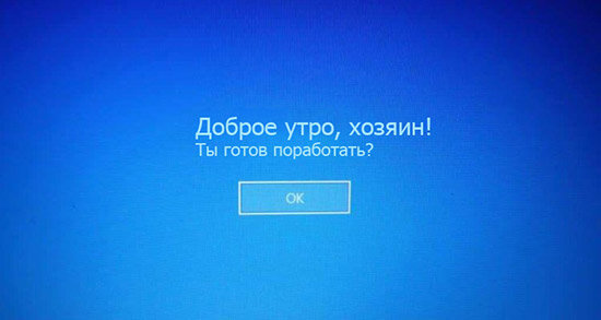 В этой статье рассмотрим 2 способа создания сообщения, которое будет отображаться при загрузке Windows 10. 1. Создание сообщения на экране загрузки с помощью редактора реестра. Открываем редактор реестра, нажав клавиши Win+R → regedit → «OK». В левой части окна «Редактор реестра» раскрываем ветку: HKEY_LOCAL_MACHINE\ SOFTWARE\ Microsoft\ Windows\ CurrentVersion\ Policies\ System. Выделяем раздел System, а справа находим параметр с названием legalnoticecaption. Дважды щелкаем по этому параметру и в поле «Значение» вводим заголовок сообщения. Например, шутливое «Доброе утро, хозяин!». Затем справа находим параметр с названием legalnoticetext. Также дважды щелкаем по этому параметру, в поле «Значение» вводим текст сообщения и нажимаем «ОК». Редактор реестра можно закрыть. Перезагружаем компьютер и при загрузке системы любуемся на экране созданным сообщением. 2. Создание сообщения с помощью локальной политики безопасности (Windows 10 Pro, Enterprise, Education). Открываем окно локальн