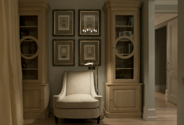 Приглушенные цвета, простые формы и симметричная компоновка мебельных групп – вот основные черты, присущие понятию «классика» в современном интерьере. Проект квартиры для семьи из трех человек от дизайн-бюро Porte Rouge, без сомнения, вобрал все лучшее из этого набора. Пространство выстроено согласно классической композиции, четко разделено по функциям и не перегружено деталями. Вместе с тем, вопреки классическим традициям, помещения кухни, столовой и гостиной совмещены в общую комнату-студию. Консольные столы холла, гостиной и кабинета, решенные в подчеркнуто темных тонах, два сапфировых стула и темно-лиловое кресло создают необходимые цветовые акценты. В отделке использованы натуральные материалы и классические элементы декора: гипсовая лепнина на потолках, высокий плинтус, деревянные панели на стенах.
