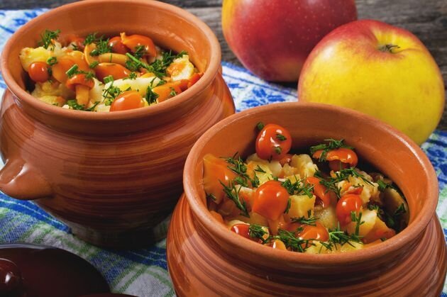 Жаркое из индейки в горшочках