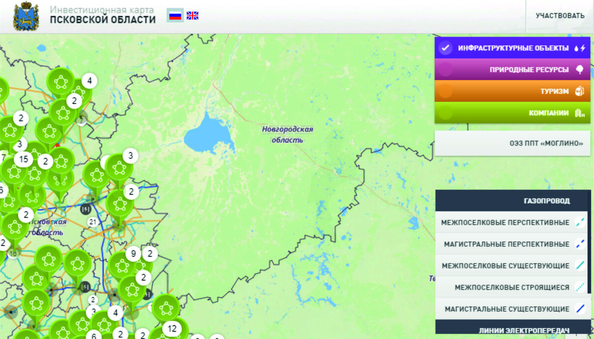 investmap.pskov.ru Отличный помощник для инвестора и тех, кто находится в поиске инвестиционной площадки, партнеров для совместного ведения бизнеса и кооперации. На площадке нашей интерактивной карты Вы сможете получить все необходимые данные об интересующих земельных участках (greenfield и brownfield), их инфраструктурной оснащенности, а также информацию о природных ресурсах региона, туристических направлениях и объектах культурного наследия Псковской области. investmap.pskov.ru Инвестиционная карта оснащена удобным поиском и возможностью ручного управления параметрами для более точного подбора площадок. Карта доступна как на русском, так и на английском языках для показа на стационарных и мобильных устройствах. Больше информации о регионе, инвестиционных площадках, предложениях, государственной и региональной поддержке для инвесторов Вы можете получить на сайте Инвестиционного портала Псковской области www.invest.pskov.ru