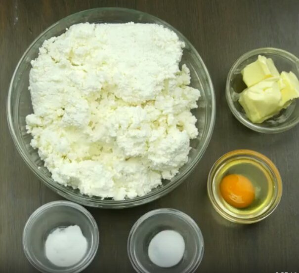 Для приготовления нам понадобятся: - Творог (1 кг) - Сливочное масло (50-70 гр) - Яйцо (1 шт.) - Соль (1.5 ч.л) - Пищевая сода (1 ч.л.) Поставьте на плиту кастрюлю с водой, доведите воду до кипения. Выложите творог в кипящую воду. Перемешайте и варите около 20 минут на среднем огне. Спустя 20 минут вытащите творог с помощью шумовки. Попутно на водяной бане растопите сливочное масло. Как только масло растопится, добавьте отваренный творог и тщательно перемешайте ингредиенты. Как только все перемешаете добавьте яйцо, соль и пищевую соду. Тщательно мешаем всю массу вручную в течение 7-10 минут до однородной консистенции. Переложите смесь в глубокую посуду(салатник, супница). Выравниваете поверхность и накрываете творожную массу пищевой пленкой, фольгой или силиконовой крышкой. Поставьт