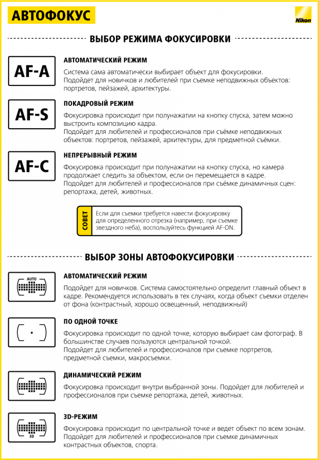 У вас было такое, что фокус на фотографии наводился куда угодно, но только не куда вы хотите? Вам знакомы AF-A, AF-S, AF-C или One Shot, Al Focus, Al Servo? Сейчас познакомитесь. AF-A/Al Focus. Полностью автоматический режим. Камера сама решает куда ей фокусироваться. Спорный режим, потому что вроде задумываться ни о чем не нужно, но вы не можете сами решить где должен быть фокус. AF-S/One Shot. Камера фокусируется где вы захотите (куда вы наведете точку фокусировки) и резкость остается на там же где и навелась. Не понятно? Попробуйте эксперимент с рукой. Сфокусируйтесь на ладони (просто поднимите руку к объективу) и уберите ладонь. Резкость останется там, где была ладонь. Мой любимый режим. С ним удобно снимать группу, если она стоит полукругом. Если наведешь на центр, то люди, которые ближе к камере будут не в резкости. Допустим, у тебя центральная точка фокусировки. Ты поворачиваешь объектив на крайнего человека. Зажимаешь кнопку спуска. Возвращаешь камеру обратно, чтобы все