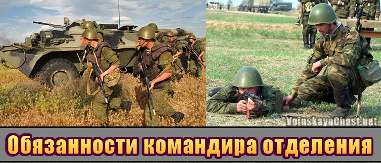 Обязанности командира отделения регламентируются 159-й статьёй Устава внутренней службы Вооруженных Сил Российской Федерации, на основе которого составляется его должностная инструкция. Итак, командир отделения обязан: