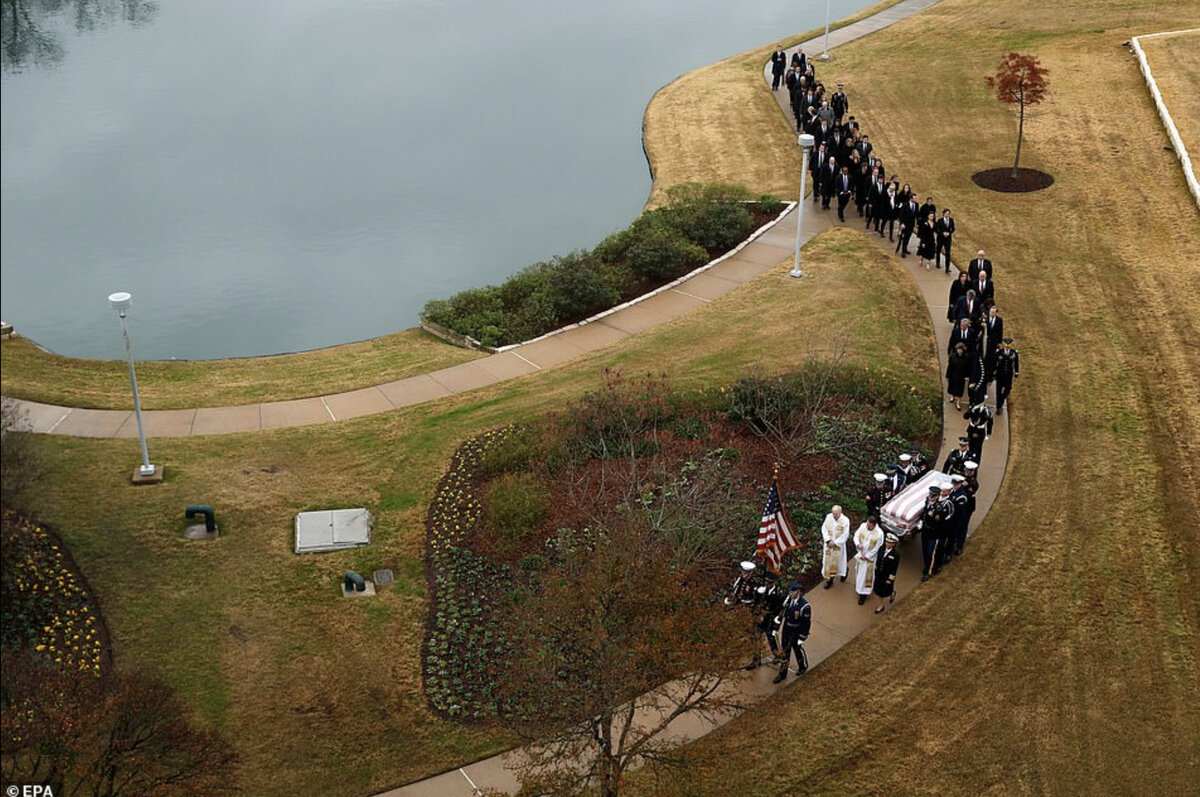 На закрытой церемонии присутствовали родные покойного, включая его старшего сына, 43-го президента США Джорджа Буша — младшего, священники и рота почетного караула в сопровождении военного оркестра. Буш будет покоиться рядом со своей супругой Барбарой, которая скончалась в апреле этого года, и с их дочерью Робин, которая умерла от лейкемии в трехлетнем возрасте в 1953 году.