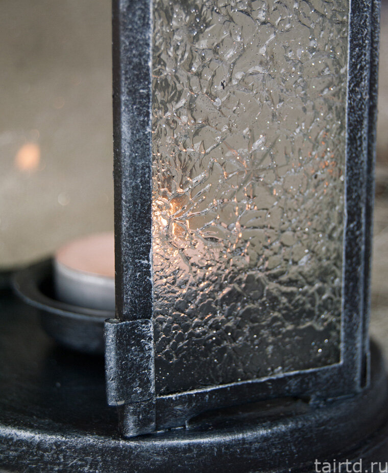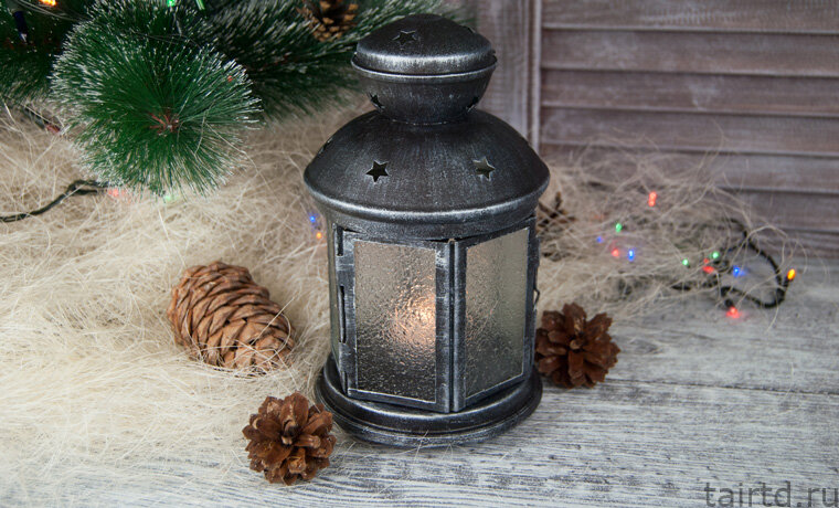 • лак акриловый матовый "Таир"; • поролоновая губка с крупными порами, кисти синтетические и кисти из щетины, бумажные полотенца. Простой декор новогоднего фонарика Первым делом аккуратно вынимаем из фонаря стёкла, чтобы не запачкать их краской. Изнутри отгибаем зажимы, которые держат их, подталкиваем и вынимаем стёкла. Петельку сверху тоже снимаем. Убираем стёкла куда-нибудь подальше, чтобы не разбить. Чтобы обеспечить хорошее с