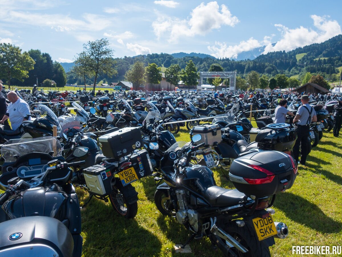 Само шоу проходит уже шестнадцать лет у подножья горы, рядом с горнолыжной школой. На довольно приличной территории разбиты шатры, в которых размещаются разные компании тем или иным боком имеющие отношение к мотоциклам BMW. Самые большие шатры это собственно выставочный зал BMW Моторрад, где можно обсмотреть все, что BMW делает на двух колесах и шатер BMW Classic в котором собраны различные олдтаймеры. Впрочем, вот чего уж, а всяких разных мотоциклов BMW всех годов выпуска на шоу полно. И оригинальные и кастомы и тюнингованные. Каких только нет. В шатрах поменьше живут Metzeler и Michelin которые тут же готовы поменять вам шины на новые. Огромное количество контор занимающихся производством полезных штук от Туратека и Вундерлиха до локальных маленьких мастерских. Глаза разбегаются. Кроме этого по всему городку разбросаны разные развлечения от шоу дрифтеров до балагана с ездой по стенкам.