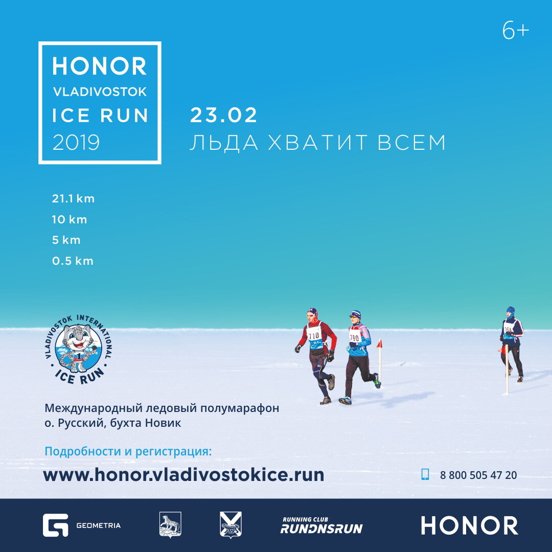 23 февраля во Владивостоке тысяча человек из десятков стран мира выйдет на старт самого масштабного спортивного мероприятия – Международного ледового полумарафона Honor Vladivostok Ice Run. Местом проведения вновь станет акватория бухты Новик на о. Русском. Бросить вызов своим возможностям, стать частью самого масштабного спортивного события и побороться за призовой фонд в 300 000 тысяч рублей может каждый, нужно лишь пройти регистрацию на сайте. Полумарафон Honor Vladivostok Ice Run в Приморской столице пройдет в четвертый раз и можно смело сказать, что это впечатления на всю жизнь! Традиционно генеральным спонсором полумарафона стал бренд Honor, созданный для смелых и активных людей, которые не боятся развиваться и выходить за рамки привычного. Именно поэтому Honor поддерживает храбрых любителей бега. Профессиональные спортсмены и начинающие любители бега 23 февраля смогут испытать свои силы и преодолеть ледовые дистанции. Часть участников побегут классическую полумарафонскую дистан