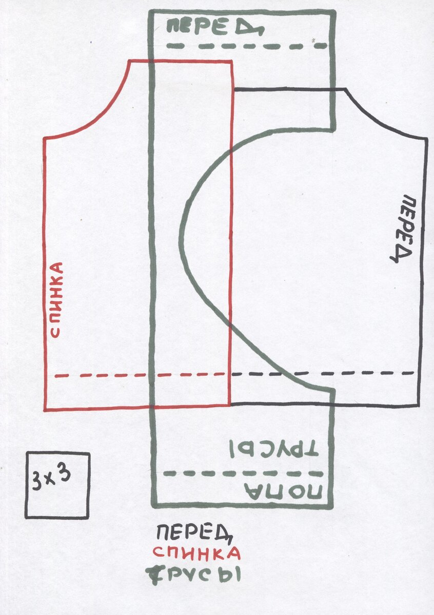 Выкраиваем детали: перед и спинка майки, трусики.